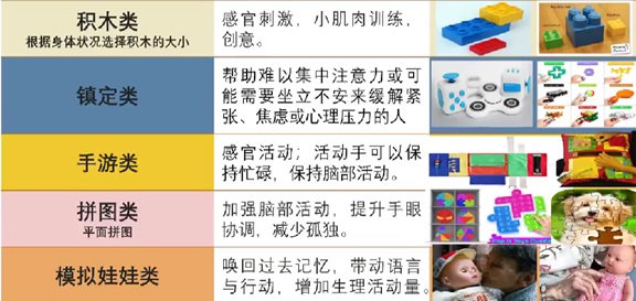 注: 鼓励家人陪伴失智老年人一起玩玩具,以免误食等意外发生。